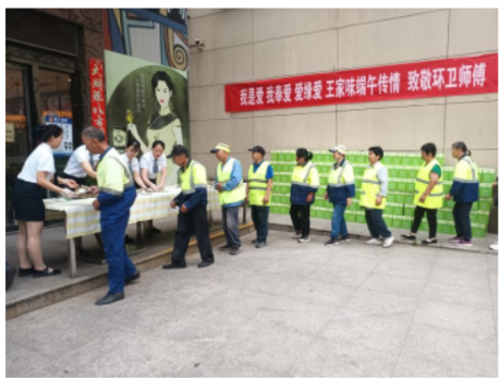 【概要描述】端午節(jié)將至,為表達(dá)對(duì)城市美容師的敬意與關(guān)懷,5月31日早上王家味飯店特別邀請(qǐng)常州市環(huán)球環(huán)衛(wèi)服務(wù)有限公司50余名環(huán)衛(wèi)工人到店,免費(fèi)享用熱騰騰的粽子、咸鴨蛋以及特色菜肴,并送上節(jié)日祝福,讓辛勤勞動(dòng)的環(huán)衛(wèi)工人們提前感受節(jié)日的溫暖。